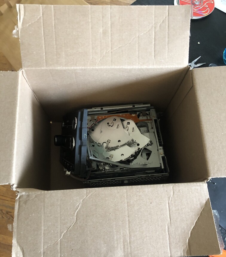Once everything was done and dusted with that, I went back to trying to recover the CDs in the old radio. I ended up having to basically destroy the top metal cover just to get inside, and tear apart each lock tab keeping the CDs in place. I'm not too disappointed though, it's not like I was gonna use a broken radio anyway :3